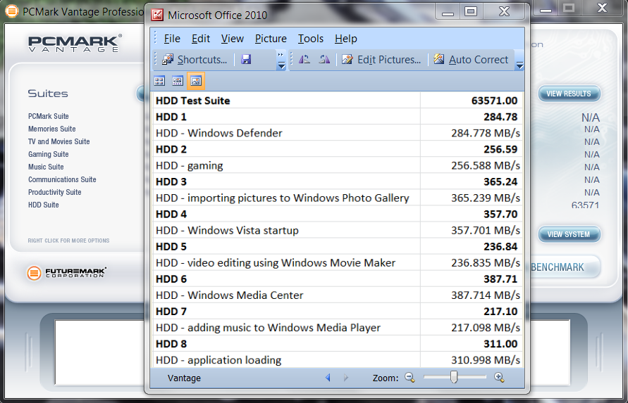 The SSD Review uses benchmark software called PCMark Vantage x64 HDD Suite to create testing scenarios that might be used in the typical user experience. There are eight tests in all and the tests performed record the speed of data movement in MB/s to which they are then given a numerical score after all of the tests are complete. The simulations are as follows: