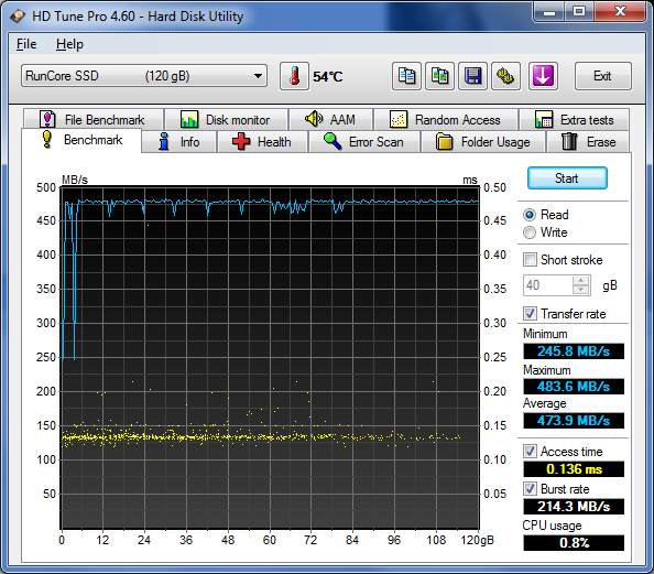 Runcore T50 6Gb/s mSATA 120GB SSD Review – HDTune Pro Testing