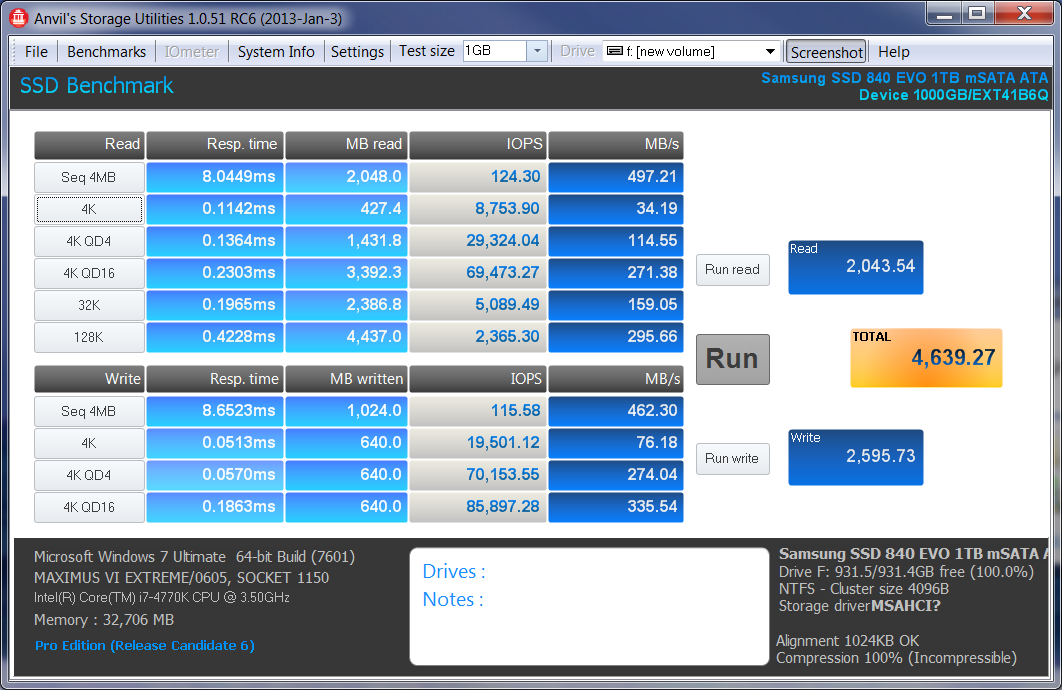 SAMSUNG 840 EVO 1TB mSATA SSD VANTAGE PERFORMANCE