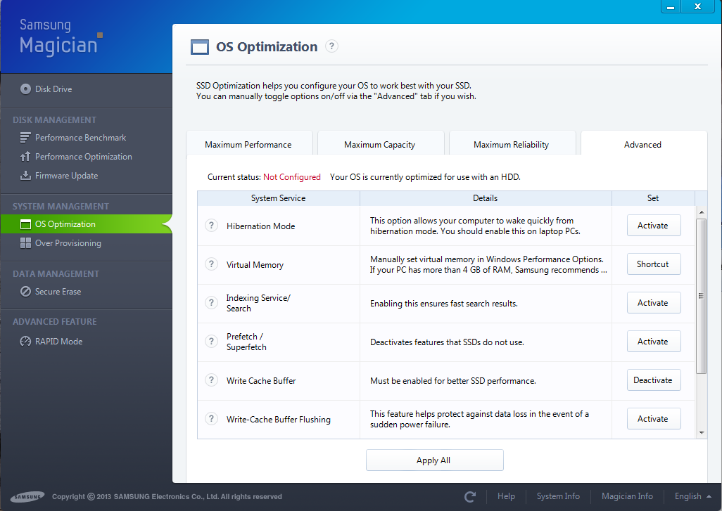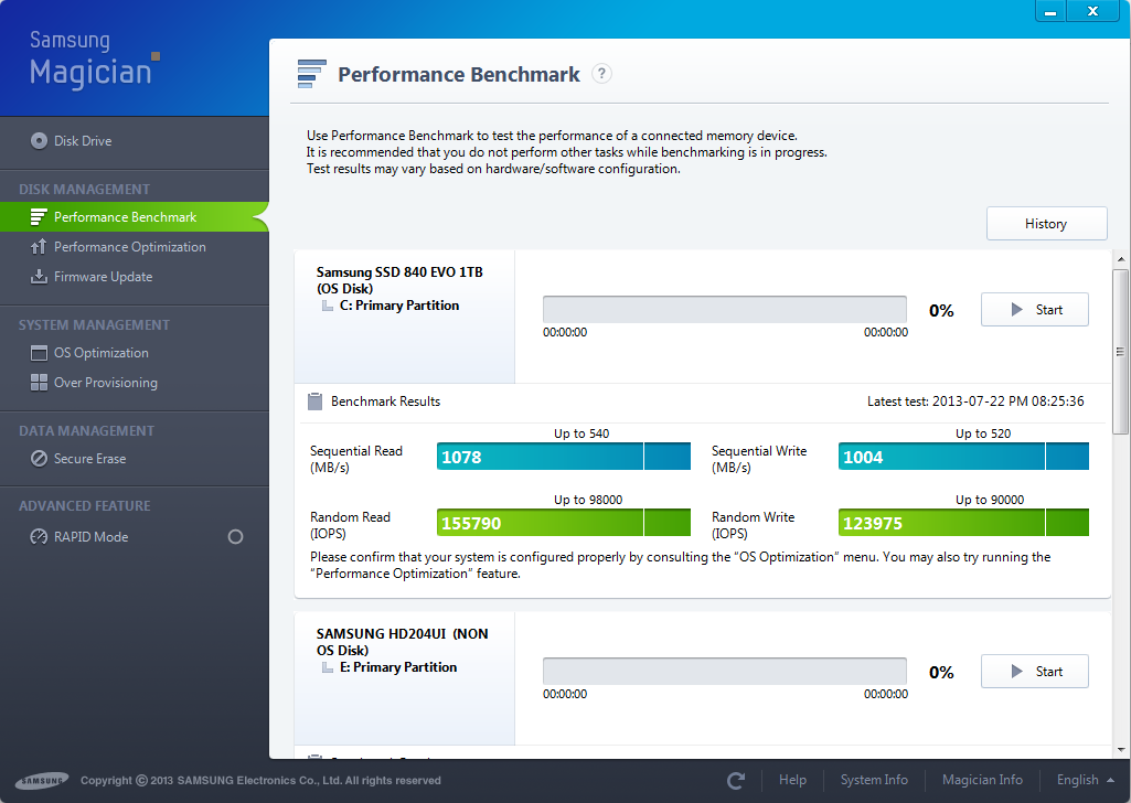 Samsung has gone to great lengths to make Samsung Magician complete. At the time of this report, we are using Ver. 4.2 which includes the new RAPID Technology feature, where the included version was 4.1. This is still a BETA release but should be available for download shortly after product release.