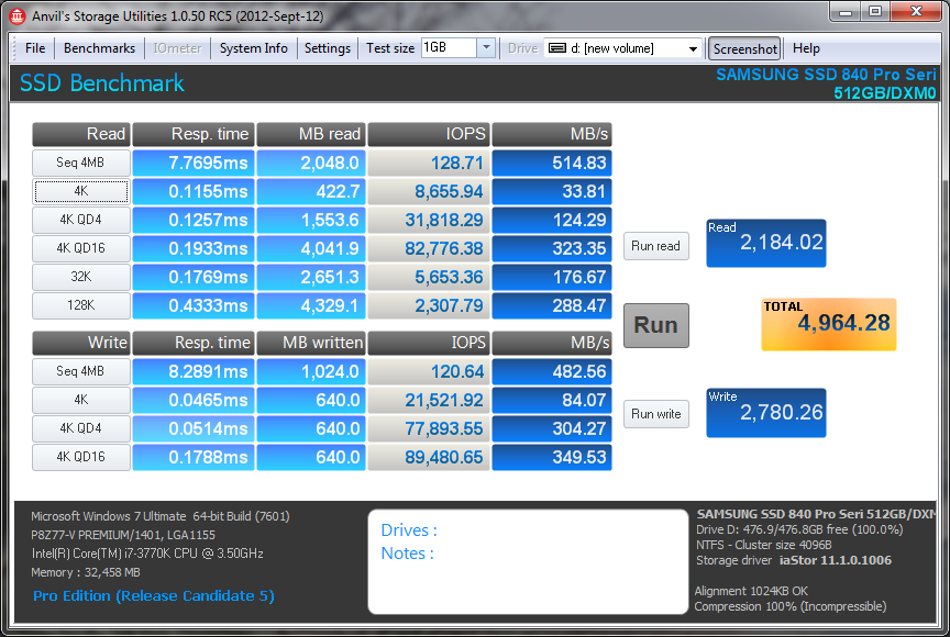 i’ve read many articles on the internet and after some changes in my pc configuration, i only get about 660 score for my Samsung SSD 840 Pro 256GB using AS SSD Benchmark. So, what did you do to get more than 1100 score with the same SSD??? it’s unbelievable!!!