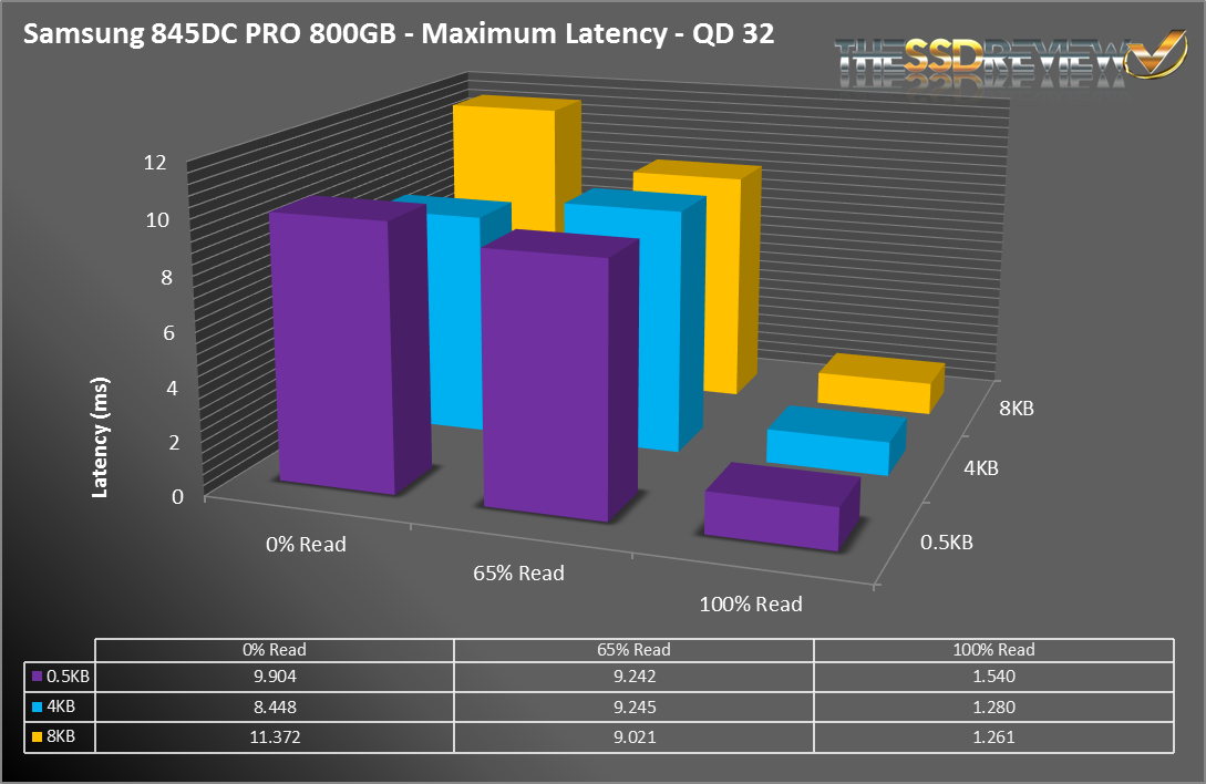 Even more impressive is the maximum latency. Almost off of our results were under 10ms, with maximum read latency under 2ms.