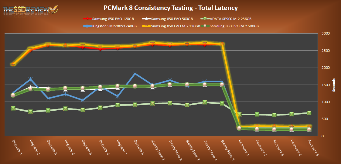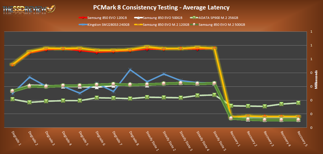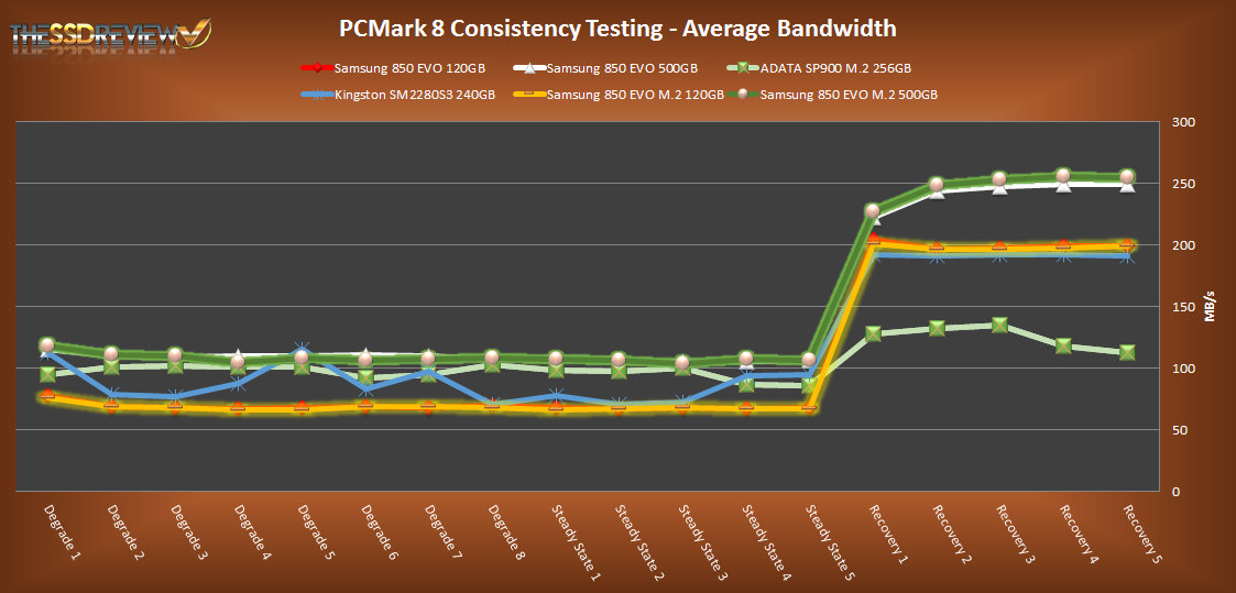 In reading the results, the Degrade and Steady State phases represent heavy workload testing while the recovery phase represents typical consumer light workload testing.