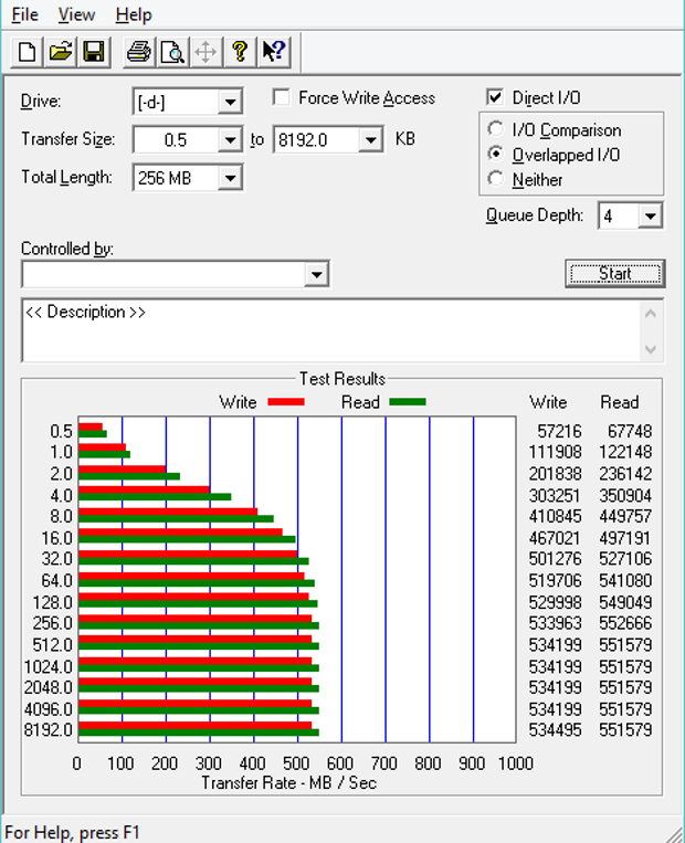 ATTO Disk Benchmark is perhaps one of the oldest benchmarks going and is definitely the main staple for manufacturer performance specifications. ATTO uses RAW or compressible data and, for our benchmarks, we use a set length of 256MB and test both read and write performance of various transfer sizes ranging from 0.5 to 8192KB. Manufacturers prefer this method of testing as it deals with compressible data rather than random (which includes incompressible data), which although more realistic to everyday use, results in lower performance results.