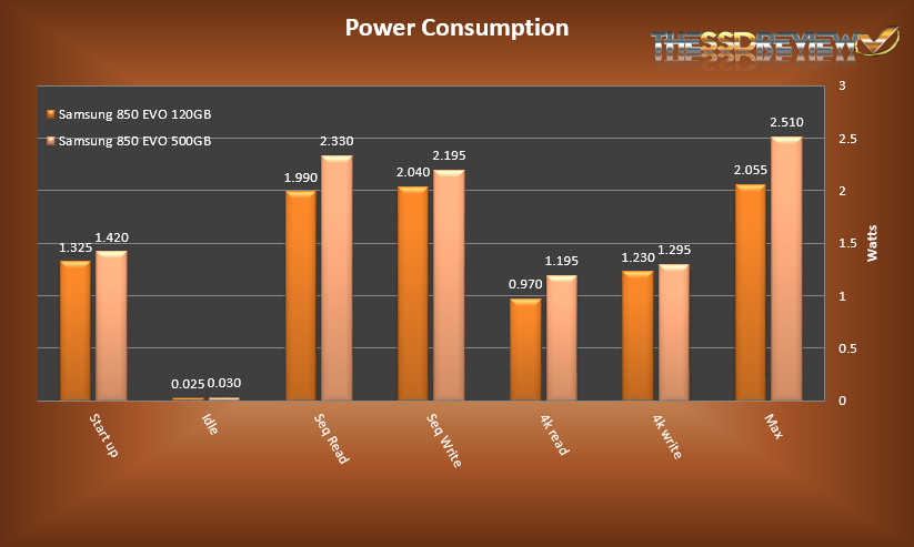 In power testing, the drive passed with flying colors, staying well within specification and presenting us with a new level of low power consumption during idle. Overall, very impressive results with the new 850 EVO.