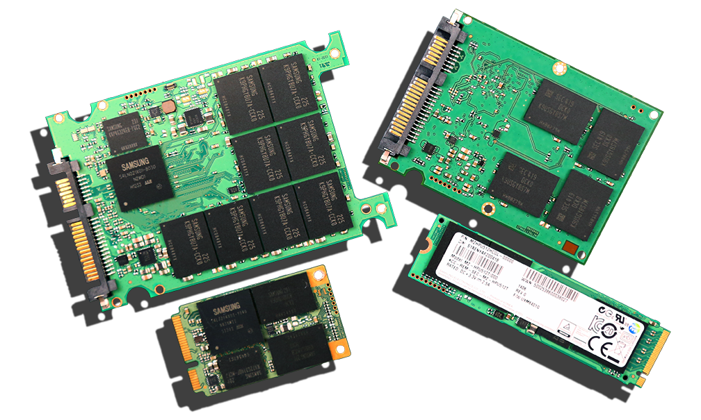 Perhaps a bit more interesting is the size of this 1TB drive when we compare it to the notebook, mSATA and M.2 (XP941) form factors. Seen top right in the picture below, the 850 Pro is little more than a 2X jump on the Samsung 840 mSATA SSD bottom left:
