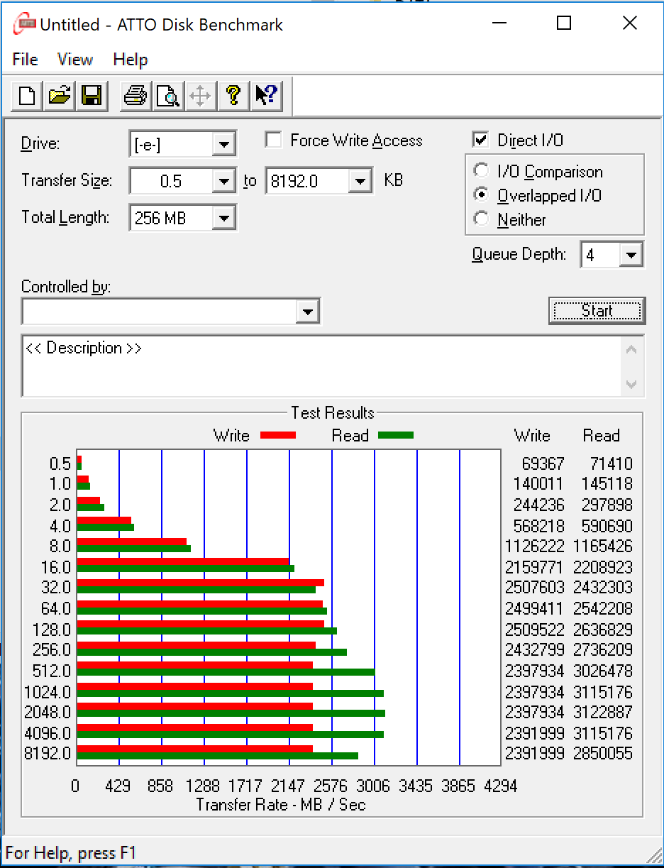 ATTO Disk Benchmark is perhaps one of the oldest benchmarks going and is definitely the main staple for manufacturer performance specifications. ATTO uses RAW or compressible data and, for our benchmarks, we use a set length of 256mb and test both the read and write performance of various transfer sizes ranging from 0.5 to 8192kb. Manufacturers prefer this method of testing as it deals with raw (compressible) data rather than random (includes incompressible data) which, although more realistic, results in lower performance results. Please click on the result should it be hard to read on smaller monitors.