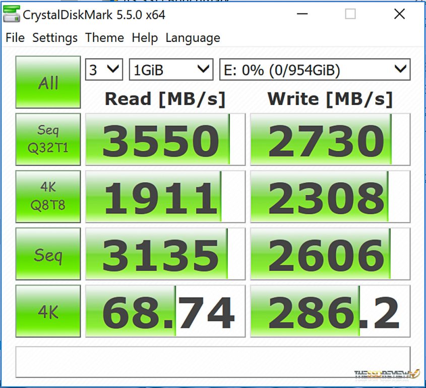 This Samsung 960 Pro fared well with all tests but one being over 1GB/s, and two of the results over 2GB/s. Once again…top score.