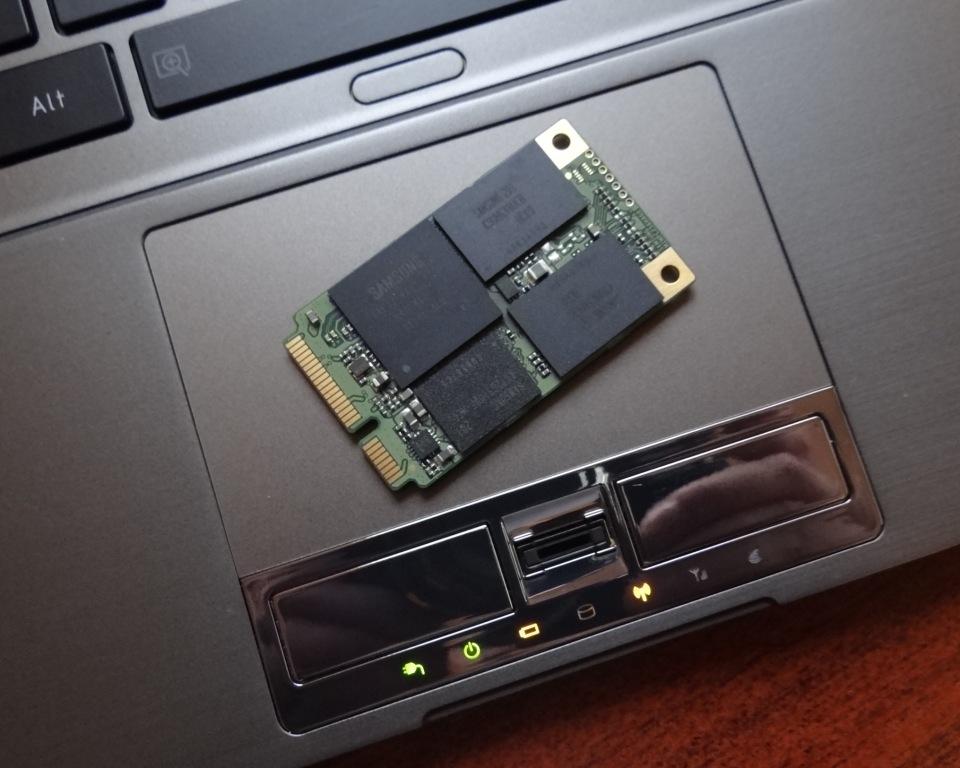 This photograph does a good job of showing the PM830 SSDs’s small size as it sits in the touchpad of our Toshiba Z830 ultrabook.