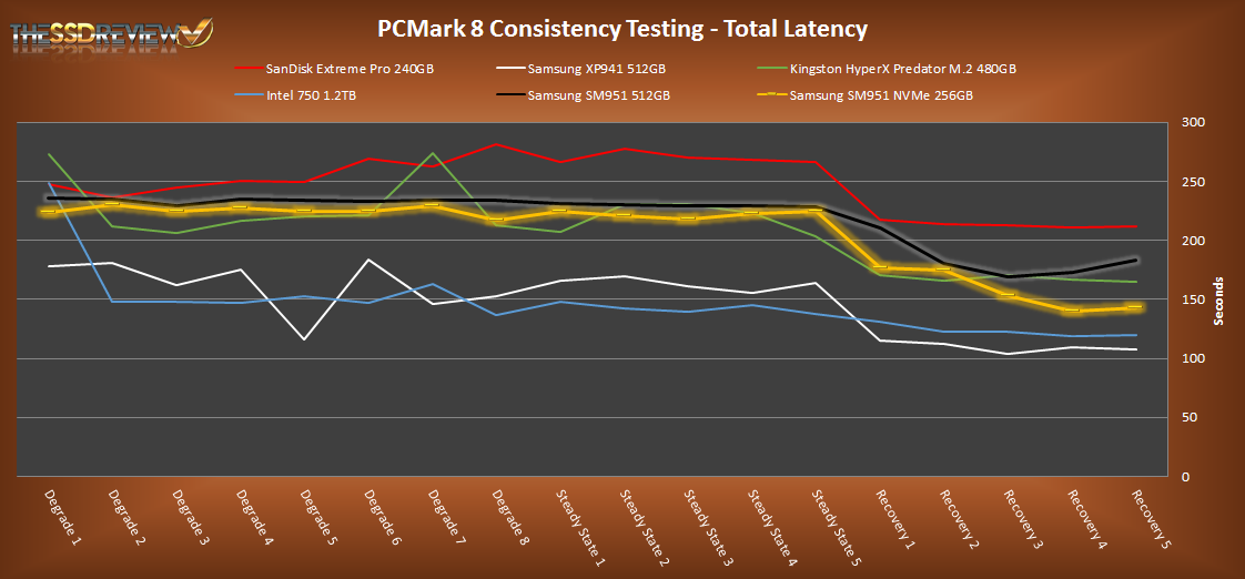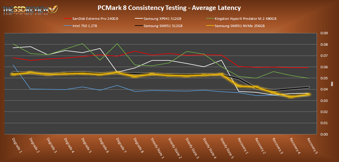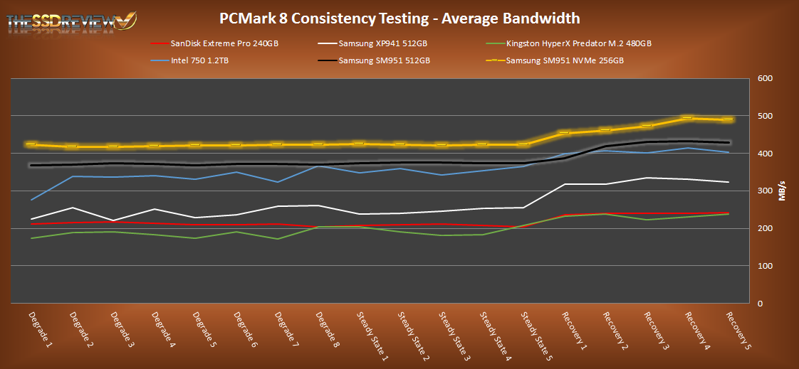 In reading the results, the Degrade and Steady State phases represent heavy workload testing while the recovery phase represents typical consumer light workload testing.