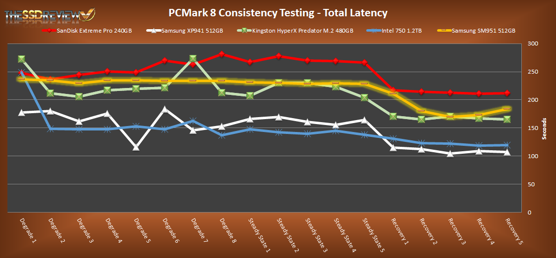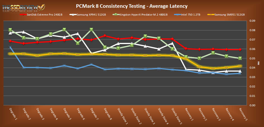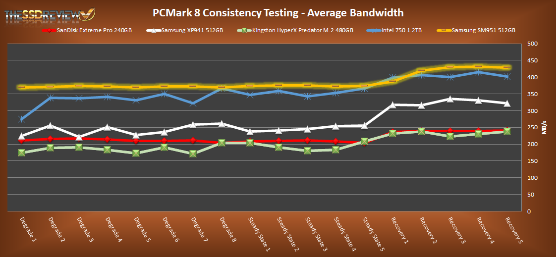 In reading the results, the Degrade and Steady State phases represent heavy workload testing while the recovery phase represents typical consumer light workload testing.