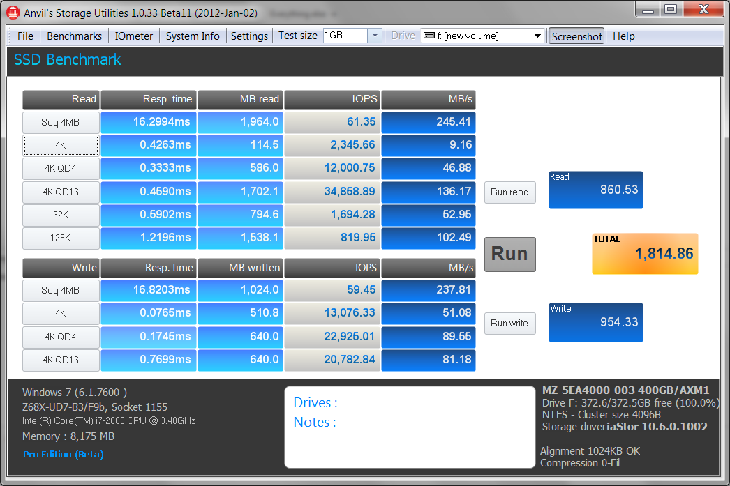 Over the last little while, we have been assisting with beta testing new benchmark software called Anvil Storage Utilities which is an absolutely amazing SSD benchmarking utility. Not only does it have a preset SSD benchmark, but also, it has included such things as endurance testing and threaded I/O read, write and mixed tests, all of which are very simple to understand and utilize in our benchmark testing.