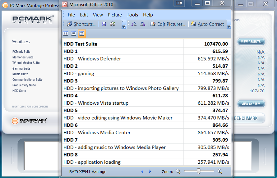 DUO SAMSUNG XP941 IN RAID 0 PCMARK VANTAGE RESULTS