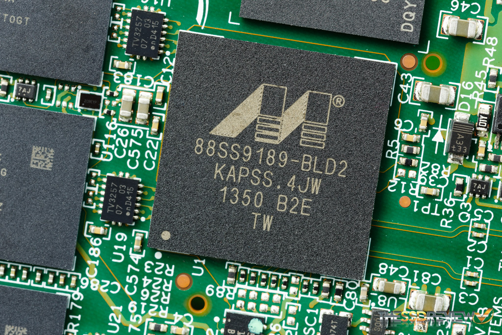 There is also an array of 14 tantalum capacitors used by their EverGuard Technology. The thermal pad is located on the back side of the controller on the PCB to help dissipate heat into the shell.