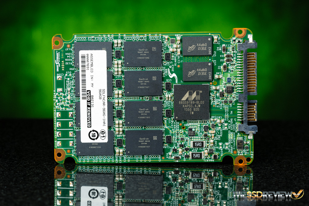 The CloudSpeed Eco utilizes a Marvell 88SS9189 controller and SanDisk’s 19nm cMLC (consumer MLC) NAND. Each package is 64GB in capacity for a total raw capacity of 1024GB. It is factory over provisioned it by 7%, resulting in a final capacity of 960GB and once formatted there is 894GB available to the end user.