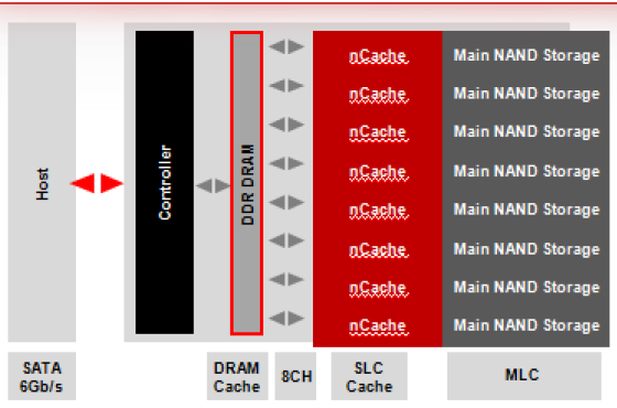 Without getting too complicated, nCache dedicates a very small portion of each NAND module to a ‘virtual’ SLC cache where small 4K writes accumulate. When called, these 4K files are flushed at a speed much higher than they might normally be. Does it work? Lets watch the benchmarks closely and then revisit this in our report summary.