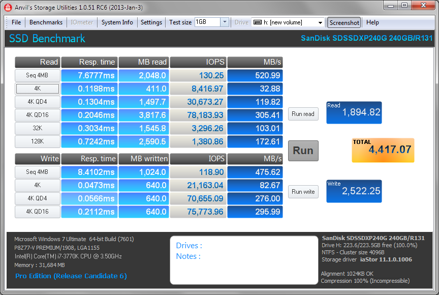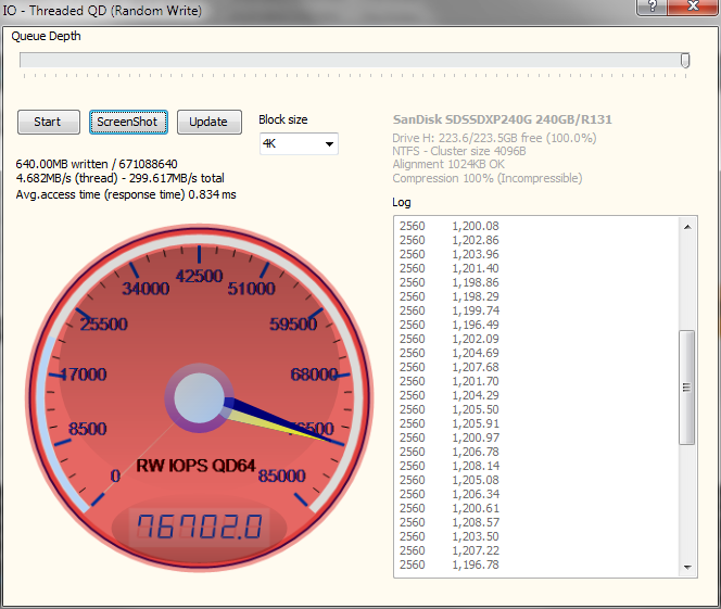 Anvil confirms much of what we have seen so far which is that the SanDisk Extreme II is a rock solid SSD. Let’s see if we can pull the IOPS right up to specs: