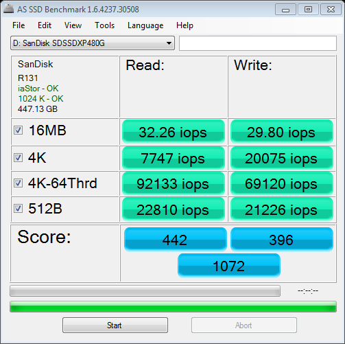 These are great results for such a value-targeted SSD. Not only is the Total Score of 1072 very encouraging, but also, we don’t often see such high read and write 4K IOPS. The only ‘slight’ concern we have comes in with the Copy Bench test seen here, where two of the speeds were amazing SAT 3 results with the Program transfer result being a bit slow. This was the same as we had seen with the 240GB version.