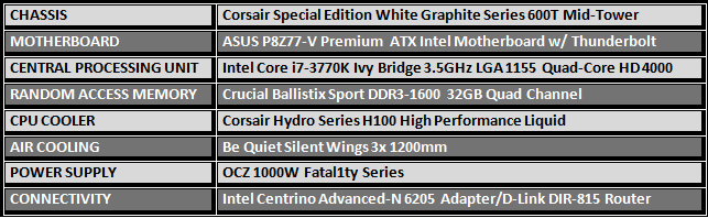 Our analysis today will be conducted with our Asus Z77 Premium Test Bench. Clicking on any pictures or benchmarks will bring up a more easily viewable high resolution image.