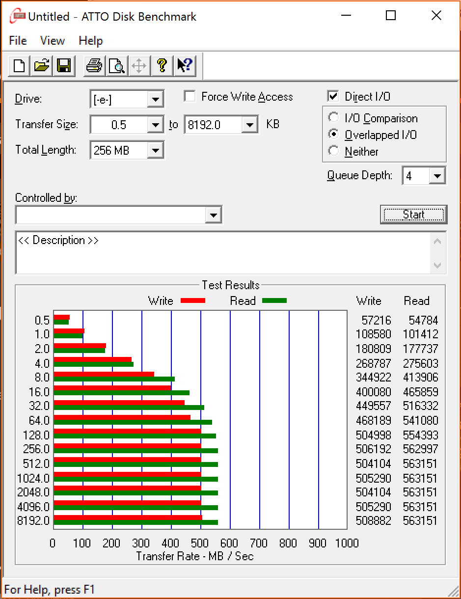 ATTO Disk Benchmark is perhaps one of the oldest benchmarks going and is definitely the main staple for manufacturer performance specifications. ATTO uses RAW or compressible data and, for our benchmarks, we use a set length of 256mb and test both the read and write performance of various transfer sizes ranging from 0.5 to 8192kb. Manufacturers prefer this method of testing as it deals with raw (compressible) data rather than random (includes incompressible data) which, although more realistic, results in lower performance results.