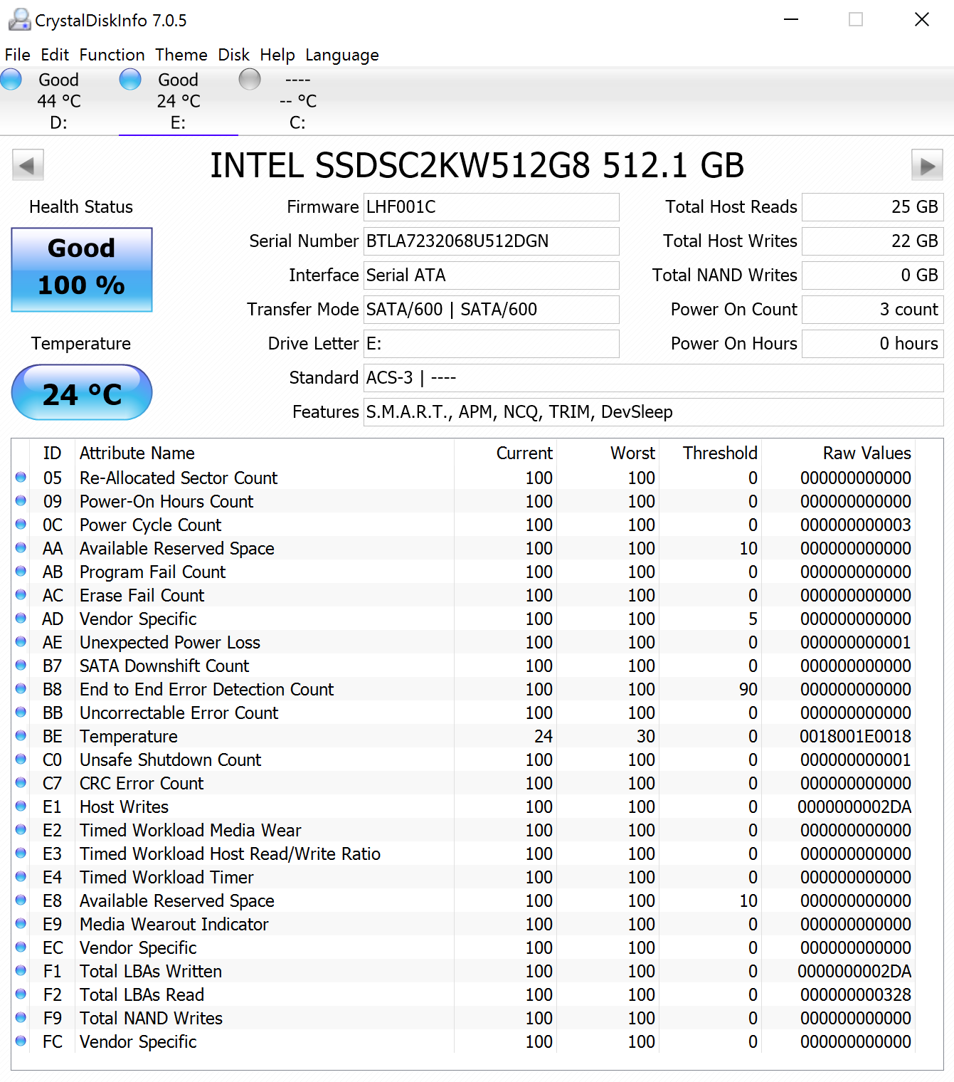 Intel has always been popular for including a lengthy selection of SMART attributes to allow for SSD monitoring.