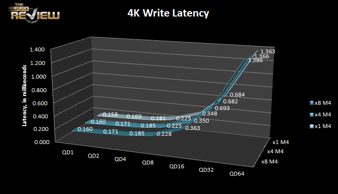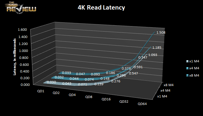 Here are some 4K latency charts for 1, 4, and 8 drives. No surprises here.