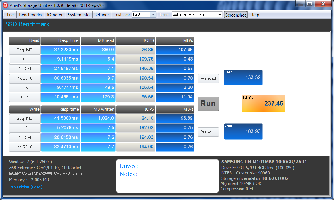 The next key element is the small 4k random write disk access which, in an SSD, now averages somewhere in the 80-90MB/s range.