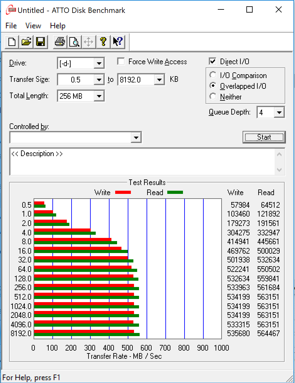 ATTO Disk Benchmark is perhaps one of the oldest benchmarks going and is definitely the main staple for manufacturer performance specifications. ATTO uses RAW or compressible data and, for our benchmarks, we use a set length of 256mb and test both the read and write performance of various transfer sizes ranging from 0.5 to 8192kb. Manufacturers prefer this method of testing as it deals with raw (compressible) data rather than random (includes incompressible data) which, although more realistic, results in lower performance results.