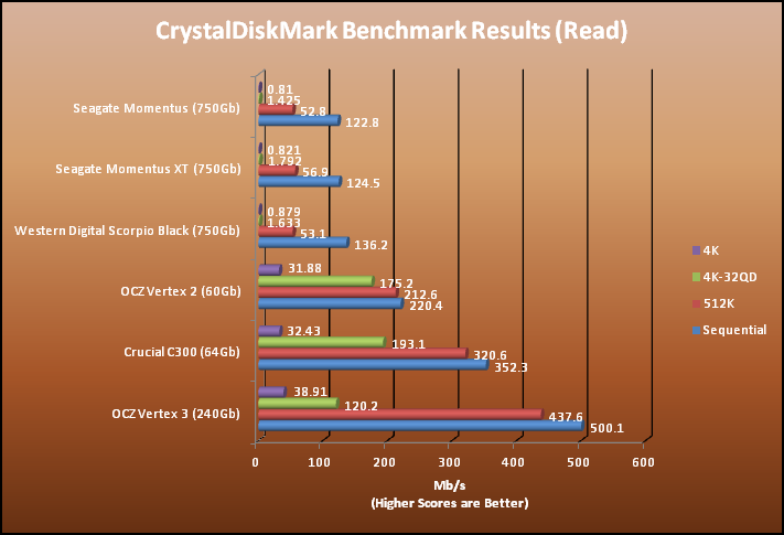 While I didn’t push the fact, I was hoping readers such as yourself would figure out that there aren’t really any benchmarks that can effectively test the Momentus. I provided all of the benchmark tests one sees with essentially every drive, but they just don’t work due to the adaptive properties of the Momentus.