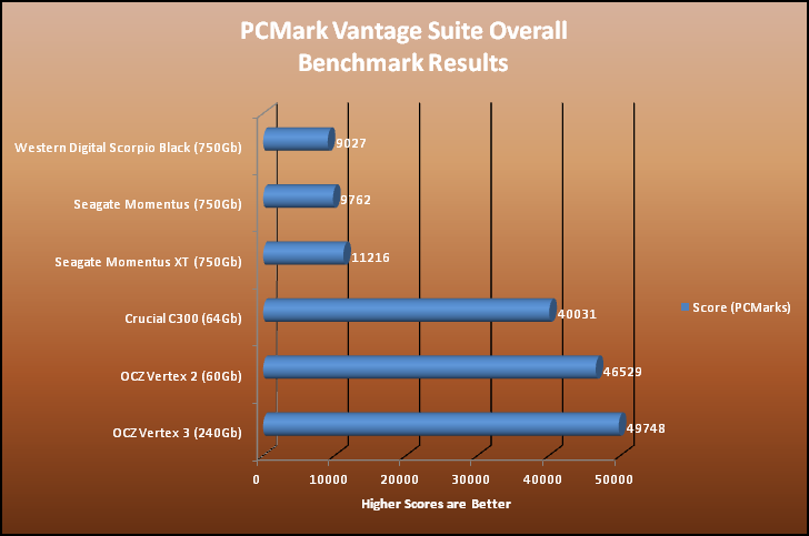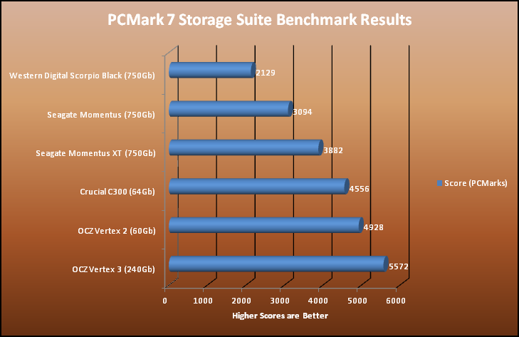 After re-running the tests for the Momentus XT, the numbers it achieved were nearly on par with those of the Crucial C300 and the OCZ Vertex 2 respectively. The NAND and FAST factor really kicked in here, yielding some impressive results.