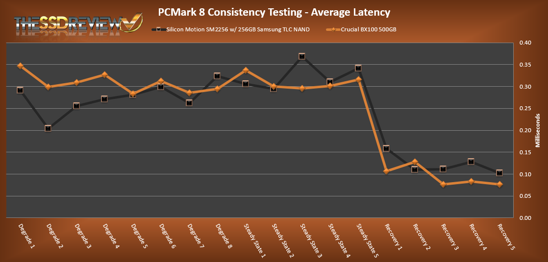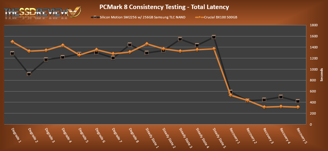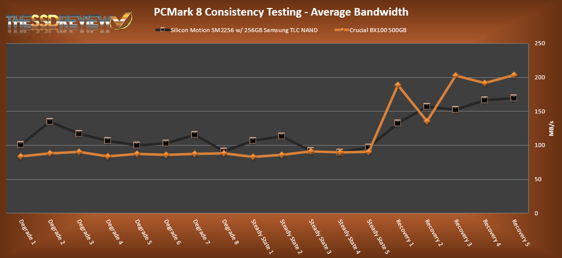 In reading the results, the Degrade and Steady State phases represent heavy workload testing while the recovery phase represents typical consumer light workload testing.