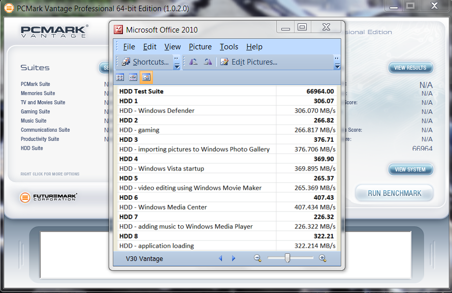 The SSD Review uses benchmark software called PCMark Vantage x64 HDD Suite to create testing scenarios that might be used in the typical user experience. There are eight tests in all and the tests performed record the speed of data movement in MB/s to which they are then given a numerical score after all of the tests are complete. The simulations are as follows: