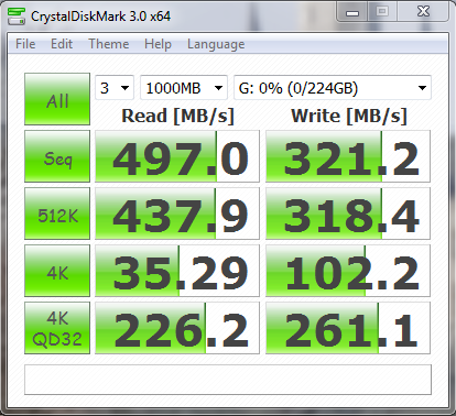 These AS SSD results are typical of most SSDs and the Total Score is actually a bit low. This is rather strange as our AS SSD Copy Benchmark resulted in the fastest transfer speeds we have seen from any SSD to date. Obtaining consistent SATA 3 results in all three tests is a rarity. Having two performance benchmarks return over 400MB/s with all three in the SATA 3 realm is pretty much unheard of.