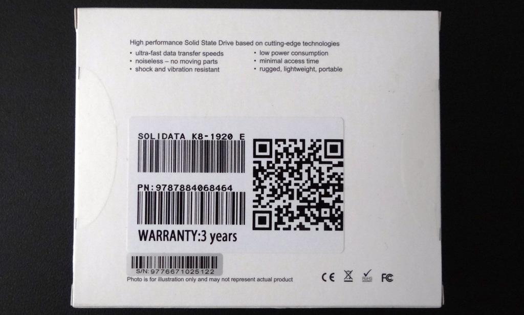 On the disk itself, warranty is reflected as two years whereas, we can see it listed at three years on the exterior packaging. This SSD is a special order item and available today. Solidata hasn’t committed to an exact price but states that it will be in the range of $5000.