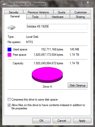 The Solidata K8-1920E SSD is a SATA 2 SSD and was created specifically for those in need of a high capacity solid state drive. It lists performance at 230MB/s read and 200MB/s write with up to 6000 IOPS at low 4k random disk access.