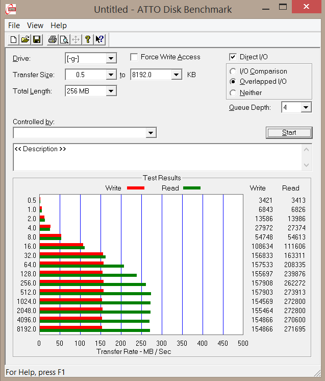 ATTO Disk Benchmark is perhaps one of the oldest benchmarks going and is definitely the main staple for manufacturer performance specifications. ATTO uses RAW or compressible data and, for our benchmarks, we use a set length of 256mb and test both the read and write performance of various transfer sizes ranging from 0.5 to 8192kb. Manufacturers prefer this method of testing as it deals with raw (compressible) data rather than random (includes incompressible data) which, although more realistic, results in lower performance results.