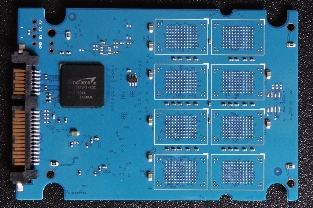 Four screws can be removed on the bottom of the SSD to reveal a PCB that contains the SF-2281 processor on one side with eight modules of Hynix synchronous 25nm NAND flash memory on the other. Clicking on any of our pictures will bring up a high resolution image for better viewing.