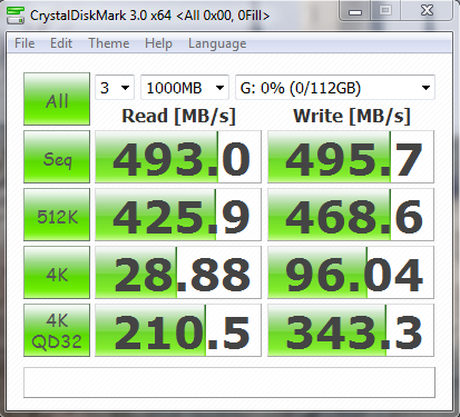 Crystal Disk Benchmark is used to measure read and write performance through sampling of raw (0/1 Fill/compressible) or random data which is, for the most part, incompressible. Many new ‘SandForce Driven’ SSD owners who can’t wait to test the performance of their SSD often grab this program and run a quick test, not realizing that they are testing with incompressible data rather than compressible data used in testing by manufacturers. We have provided compressible (oFill) results on the left with incompressible (random data) results on the right.