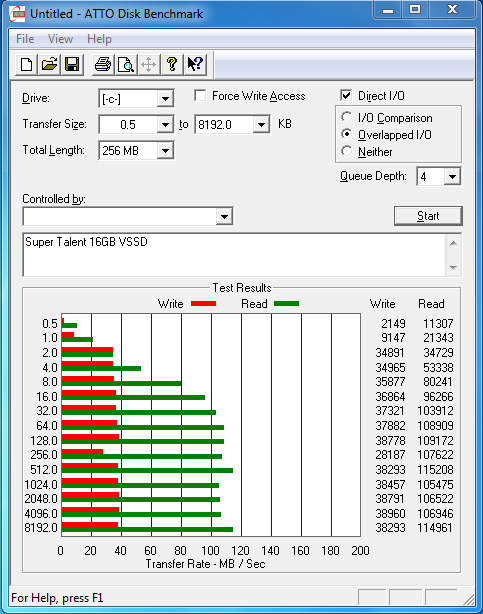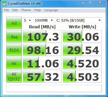 The start time shocked the heck out of me. It was done after a fresh install and all of the services and startups were enabled. With respect to the benchmarks, it was nice to see that the high sequential speeds were above the advertised maximum of 90MB/s in both Crystal DiskMark and ATTO.