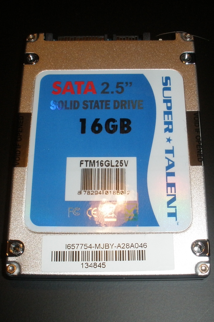Peter simply said that he would try to get this through the ‘Big Chiefs’ if we would commit to giving one of their smallest drives a run for its money, this being the Super Talent VSSD 16GB SSD. The ‘V’, by the way, stands for ‘value’