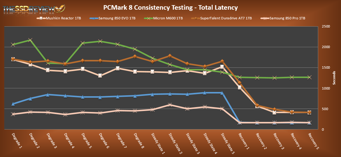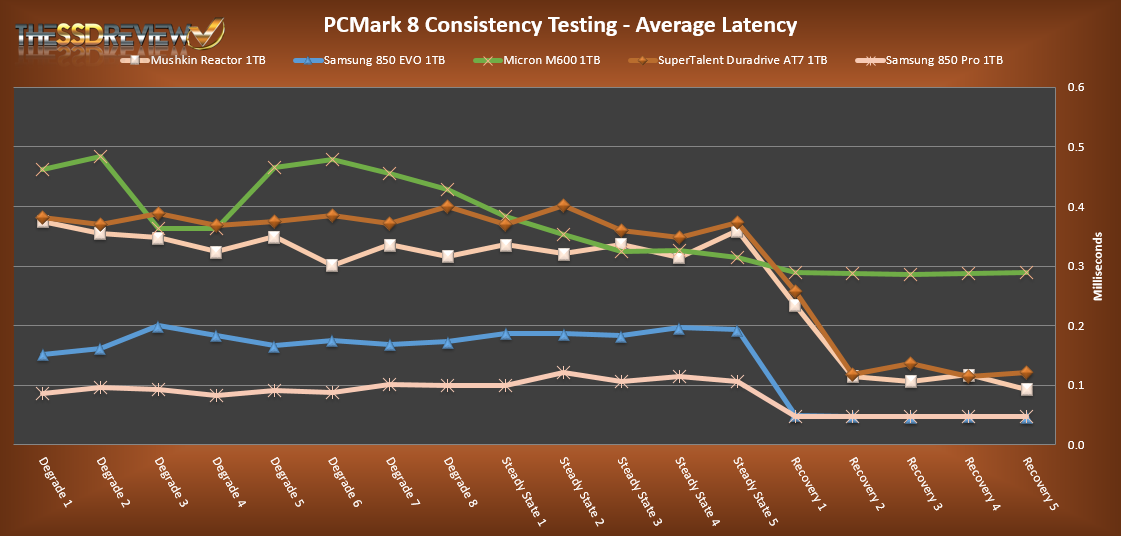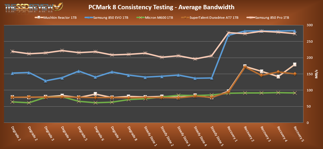 In reading the results, the Degrade and Steady State phases represent heavy workload testing while the recovery phase represents typical consumer light workload testing.