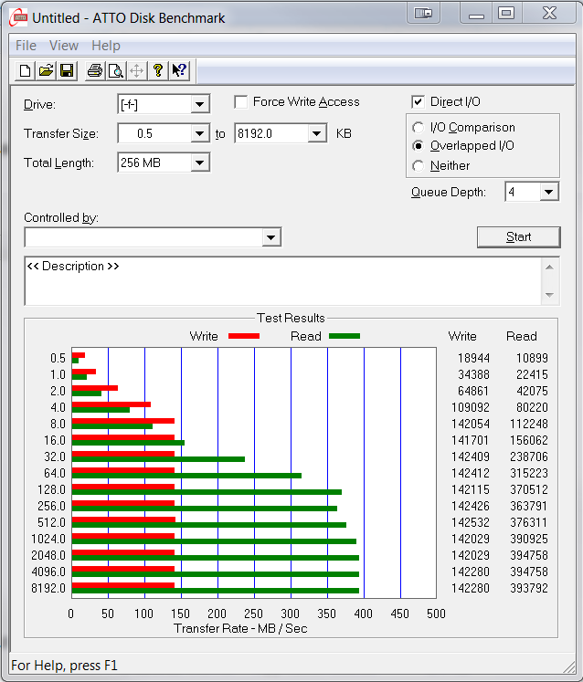 ATTO Disk Benchmark is perhaps one of the oldest benchmarks going and is definitely the main staple for manufacturer performance specifications. ATTO uses RAW or compressible data and, for our benchmarks, we use a set length of 256mb and test both the read and write performance of various transfer sizes ranging from 0.5 to 8192kb. Manufacturers prefer this method of testing as it deals with raw (compressible) data rather than random (includes incompressible data) which, although more realistic, results in lower performance results.