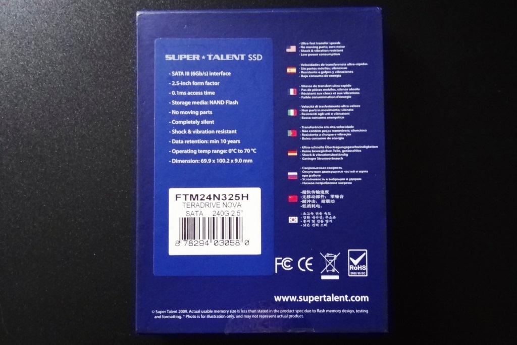 The TeraDrive Nova arrived in a case, standard of all Super Talent products that we have received, with some key literature on the back that might be valuable to the new user in their decision to move to a SSD. Not only does it describe the SSD as being a SATA 3 storage device and capable of .1ms disk access, but it also carries on to state how SSDs have no moving parts, are completely silent, shock and vibration resistant, as well as being able to perform in severe temperature climates.