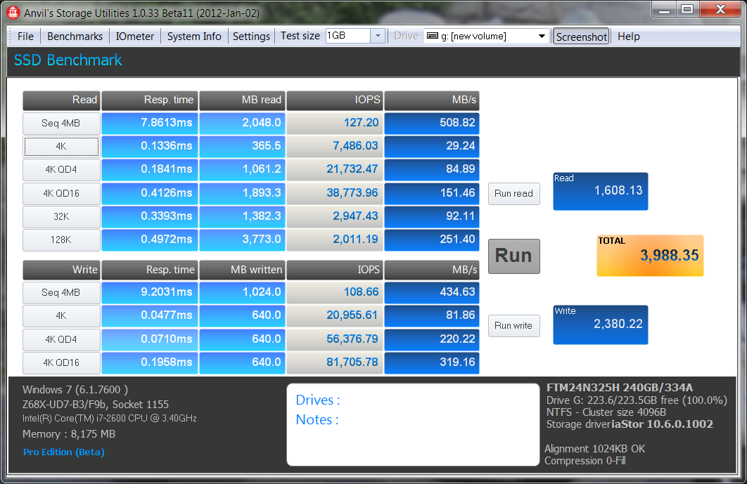 Over the last little while, we have been assisting with beta testing new benchmark software called Anvil Storage Utilities which is an absolutely amazing SSD benchmarking utility. Not only does it have a preset SSD benchmark, but also, it has included such things as endurance testing and threaded I/O read, write and mixed tests, all of which are very simple to understand and utilize in our benchmark testing. Lets see how the Super Talent TeraDrive Nova SSD does in Anvil testing: