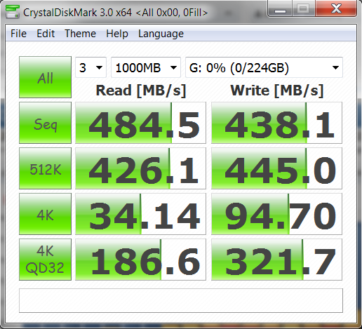 Admittedly, the the write results were a bit lower than expected in ATTO, however, the high sequential read performance of 555MB/s is excellent.