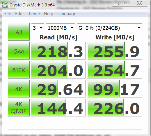 Crystal Disk Benchmark is used to measure read and write performance through sampling of raw (0/1 Fill/compressible) or random data which is, for the most part, incompressible. Many new SandForce Driven SSD owners who cant wait to test the performance of their SSD often grab this program and run a quick test, not realizing that they are testing with incompressible data rather than compressible data used in testing by manufacturers. We have provided compressible (oFill) results on the left with incompressible (random data) results on the right.