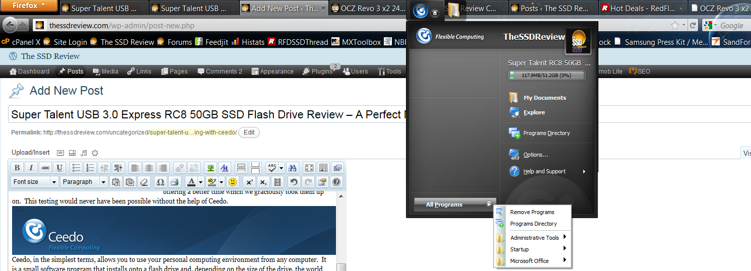 Ceedo flies along on a regular USB flash drive but is absolute lightning when installed on the Super Talent USB 3.0 Express RC8 flash drive because of its speed and capacity. Typically, I jump between a main system, two test systems, 3-4 different laptops and constantly find myself throwing my ‘Ceedo contained’ Super Talent SuperCrypt in for something or other. The switch to the RC8, which is smaller and has typical ‘SandForce Driven’ speed, is just that much sweeter.