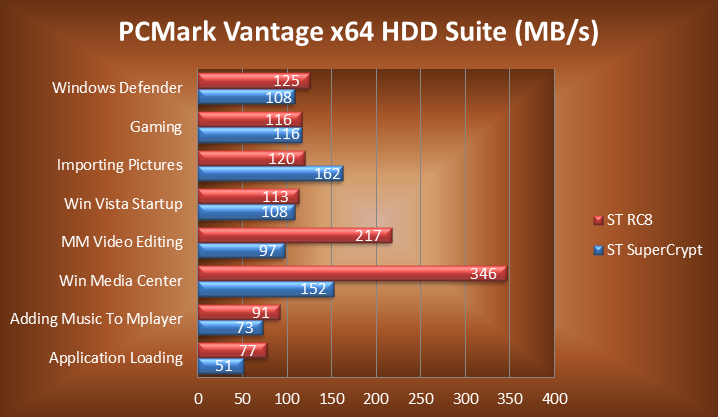 The RC8 pulled out of Vantage testing with a Total Points score of 28893 and a high transfer speed of 346MB/s in Test 6 when testing in Windows Media Player. This speed is somewhat unusual and we have word in with both SandForce and Super Talent as it technically shouldn’t be possible with a SF-1200 processor, however, the results were consistent in five separate runs.