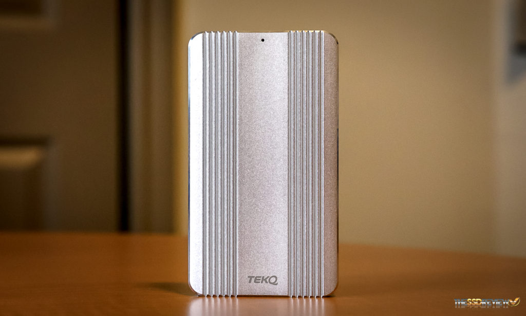 Each Tekq Rapide is constructed of a single block of CNC aluminum, that block coincidentally matching the color of Apple products but that’s ok. It is the size of a credit card and 1/2″ thick and the feel and precision of each and every cut is beautiful. Where most would have simply cut a base plate that sat on the bottom of the device, this plate is recessed perfectly into the base. The Tekq Rapide speaks to simplicity with a simple disk activity light on the front top center, and the TB3 port on the bottom.
