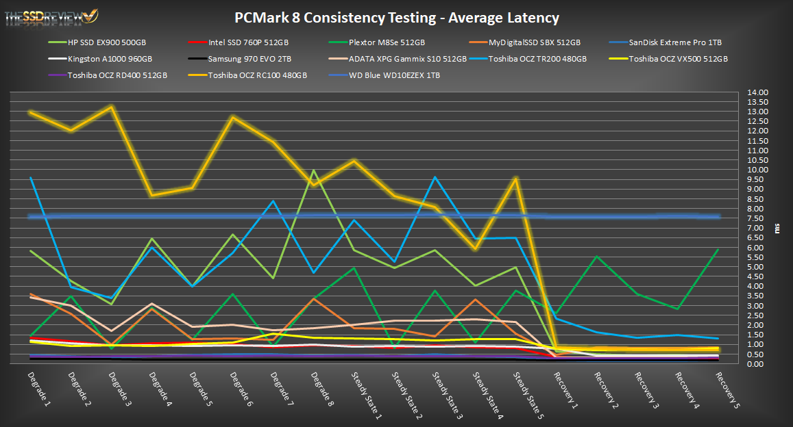 In reading the results, the Degrade and Steady State phases represent heavy workload testing while the recovery phase represents typical consumer light workload testing.